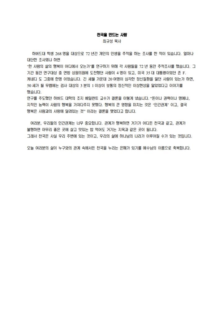 천국을 만드는 사람 최규성 목사